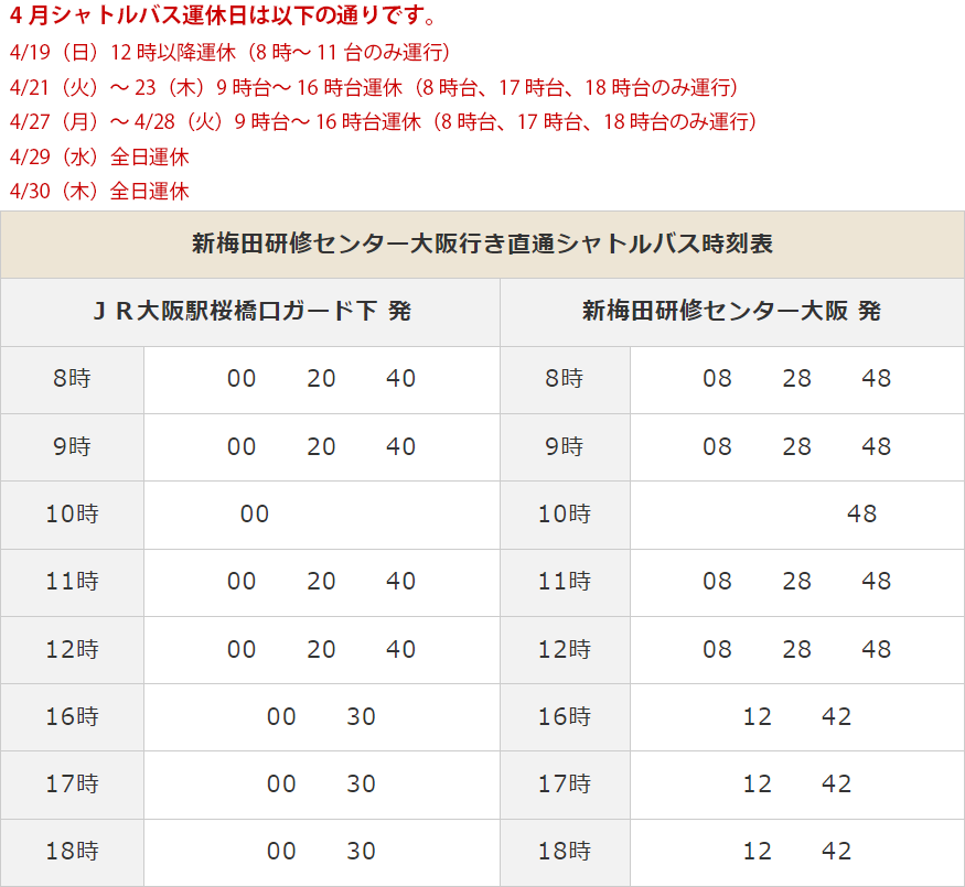 Shin-Umeda Training Center is now even more convenient for those coming from Kansai Airport area!